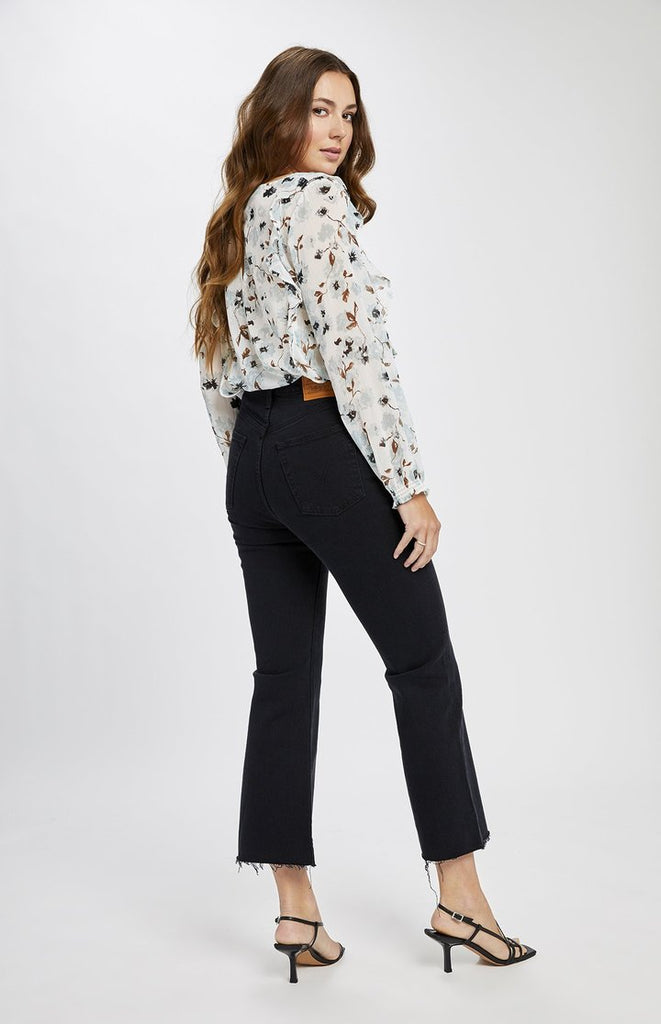 The Lune Top features ruffle detailing on the bodice and at the cuffs. The perfect top to transition from work to an evening out.