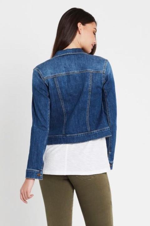Womens denim Jacket / Slim fit / Crop denim jacket / Mid indigo wash / Features contrast stitching, double breasted pockets with button fastening, button up front, long sleeves and Mavi branded copper hardware / 79.5% Cotton 18.5% Polyester 2% Elastane / Sizes S-L