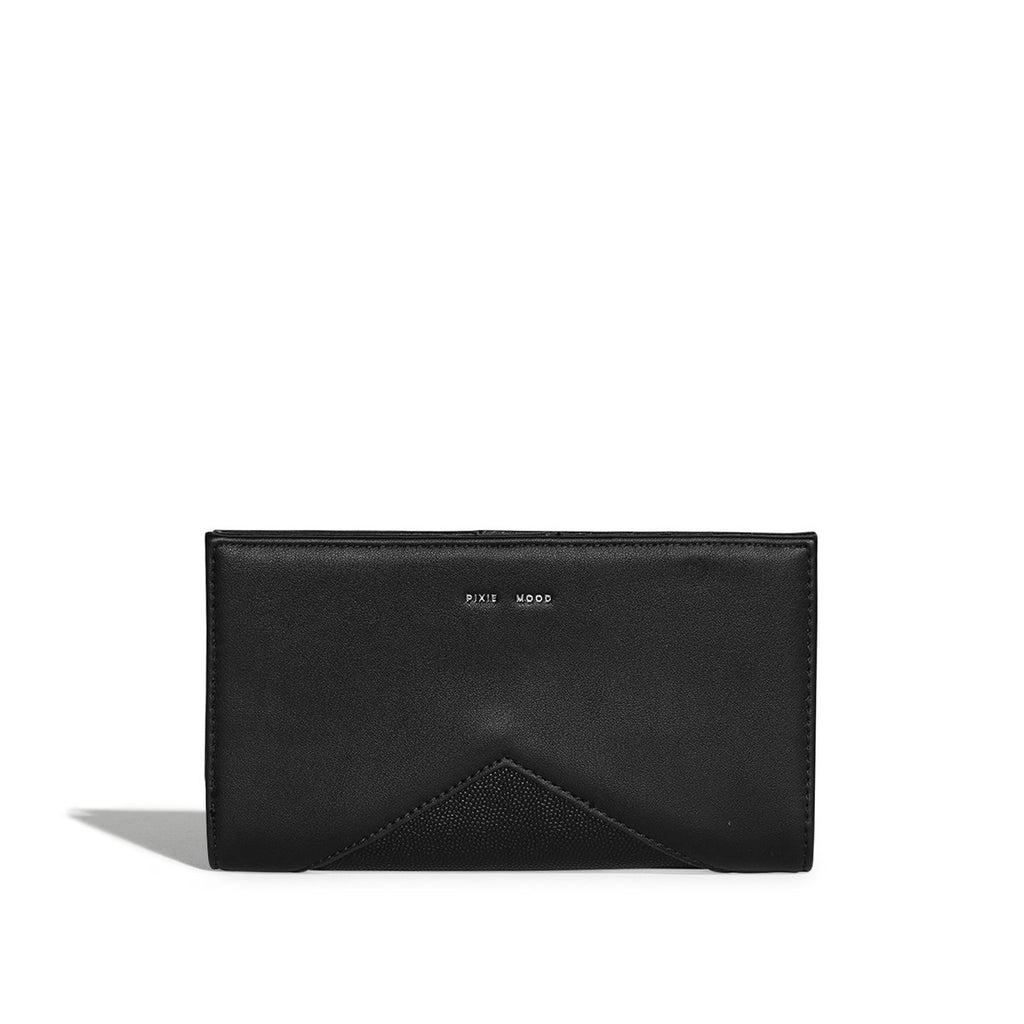 Simple and elegant flat wallet with bold contrasting faux suede details.